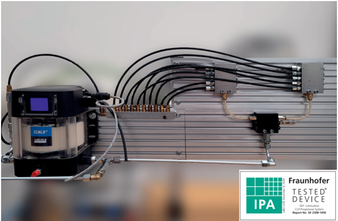 弗勞恩霍夫制造工程與自動化研究所(Fraunhofer IPA)對SKF提供的CLP緊湊型遞進潤滑系統和CLS緊湊型單線潤滑系統進行了全面測試和認證。