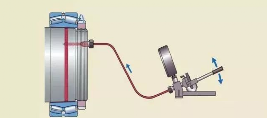 注油法的工作原理是:液壓油在高壓下通過油孔和油槽,注入軸承和軸徑之間的配合面,形成一層油膜。油膜將配合面分開,使得配合面之間的摩擦大幅減少。這種方法通常用于直接把軸承安裝在圓錐形軸徑上的情況。必須的油孔和油槽應(yīng)是整體軸設(shè)計的一部分。如果緊定套和退卸套,已加工有油孔油槽,這種方法也可用于將軸承安裝在緊定套或退卸套上。